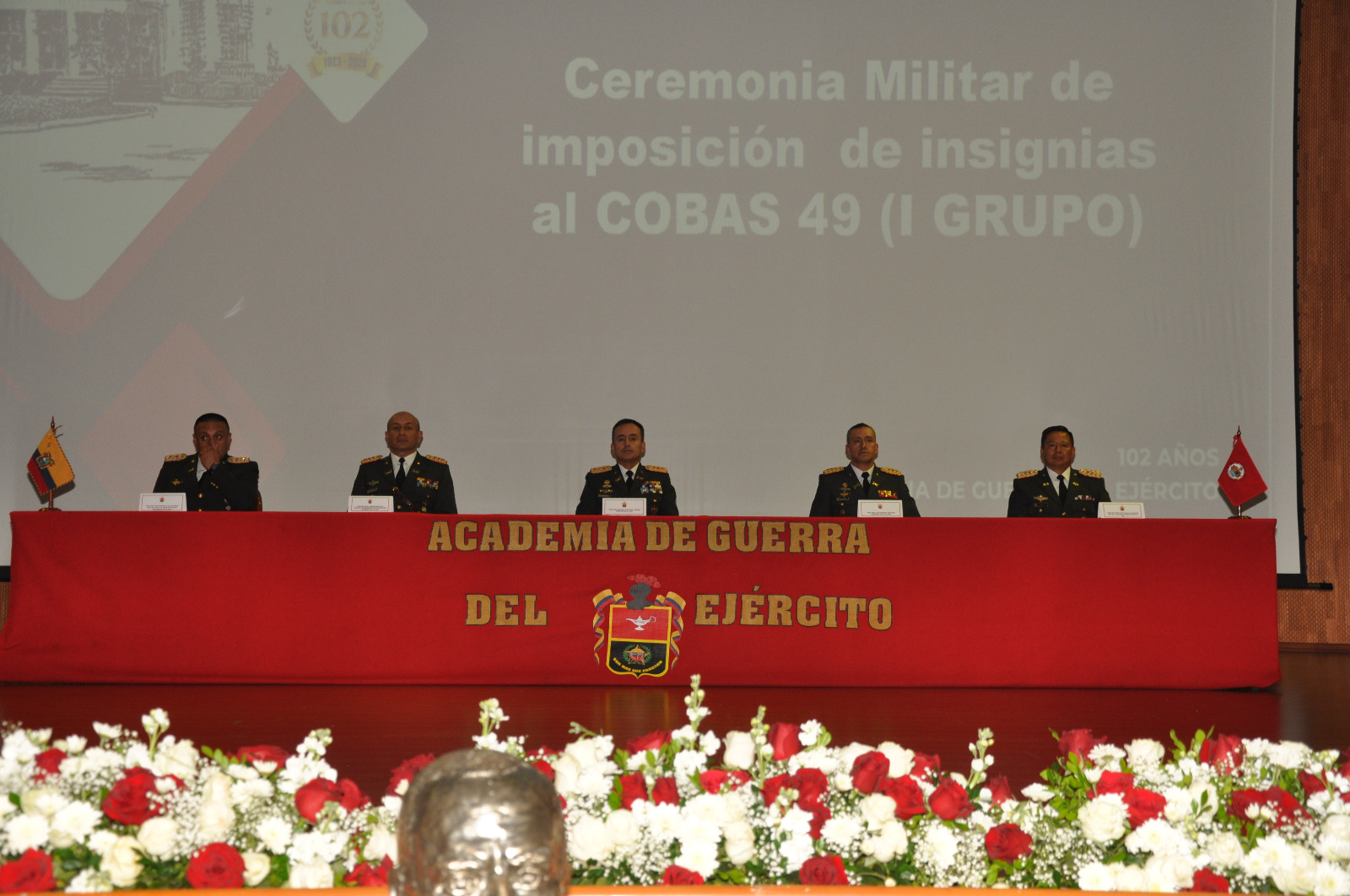 En el auditorio de la UFA – ESPE, la Academia de Guerra del Ejército llevó a cabo la ceremonia de graduación del Curso de Oficiales Básico de Armas y Servicios N.º 49 – Primer Grupo.