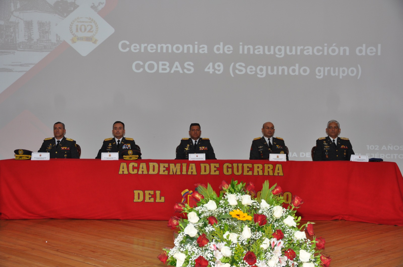 En el auditórium de la Academia de Guerra del Ejército, se llevó a cabo la ceremonia de inauguración del Curso de Oficiales Básico de Arma y Servicios N° 49, segundo grupo, para el periodo académico 2025-2026, el evento contó con la participación de 96 tenientes de Arma y Servicios, junto a oficiales docentes y alumnos.